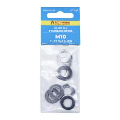 M10 Stainless Steel Flat Washer - 8 Pack (FLWM10SPK8)