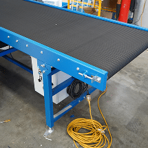 - Blue conveyor stands, channels, and cross members come with a hammertone finish for enhanced scratch and corrosion resistance