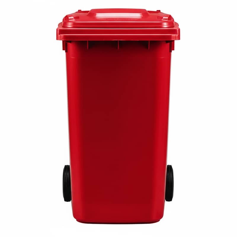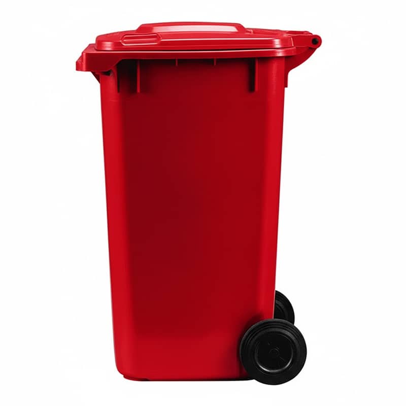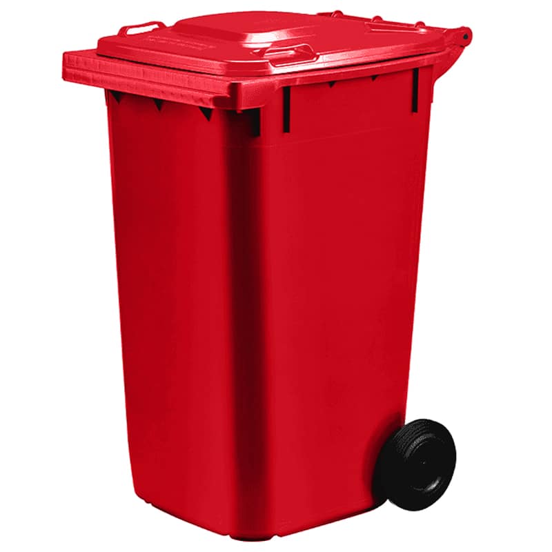 Large 240L red wheelie bin built for residential, commercial, and light industrial waste collection.