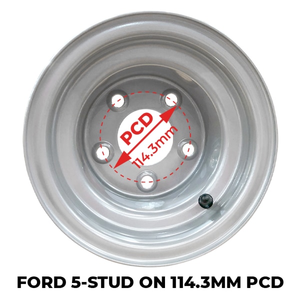 Widely used across a range of equipment a Ford 5-stud mounting pattern features 5 bolt holes on a 114.3mm (4.5”) circle.