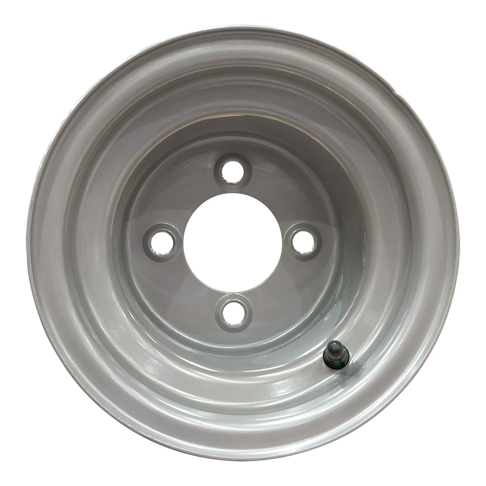 This steel rim is built to suit equipment running Mini 4-stud hubs with a 101.6mm PCD. Featuring a 3/4″ negative offset, it ensures proper clearance and alignment on compact trailers and turf equipment.