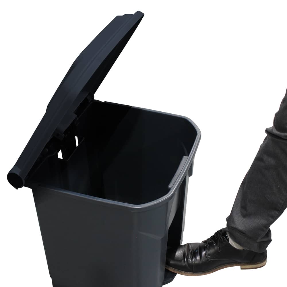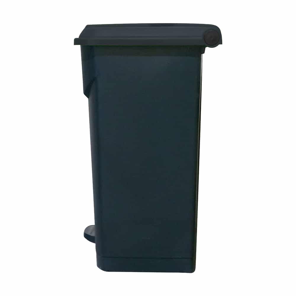 This 80L plastic step pedal bin features a grey lid for colour-coded waste separation. It provides hands-free waste disposal for clinical, food-grade and commercial environments.