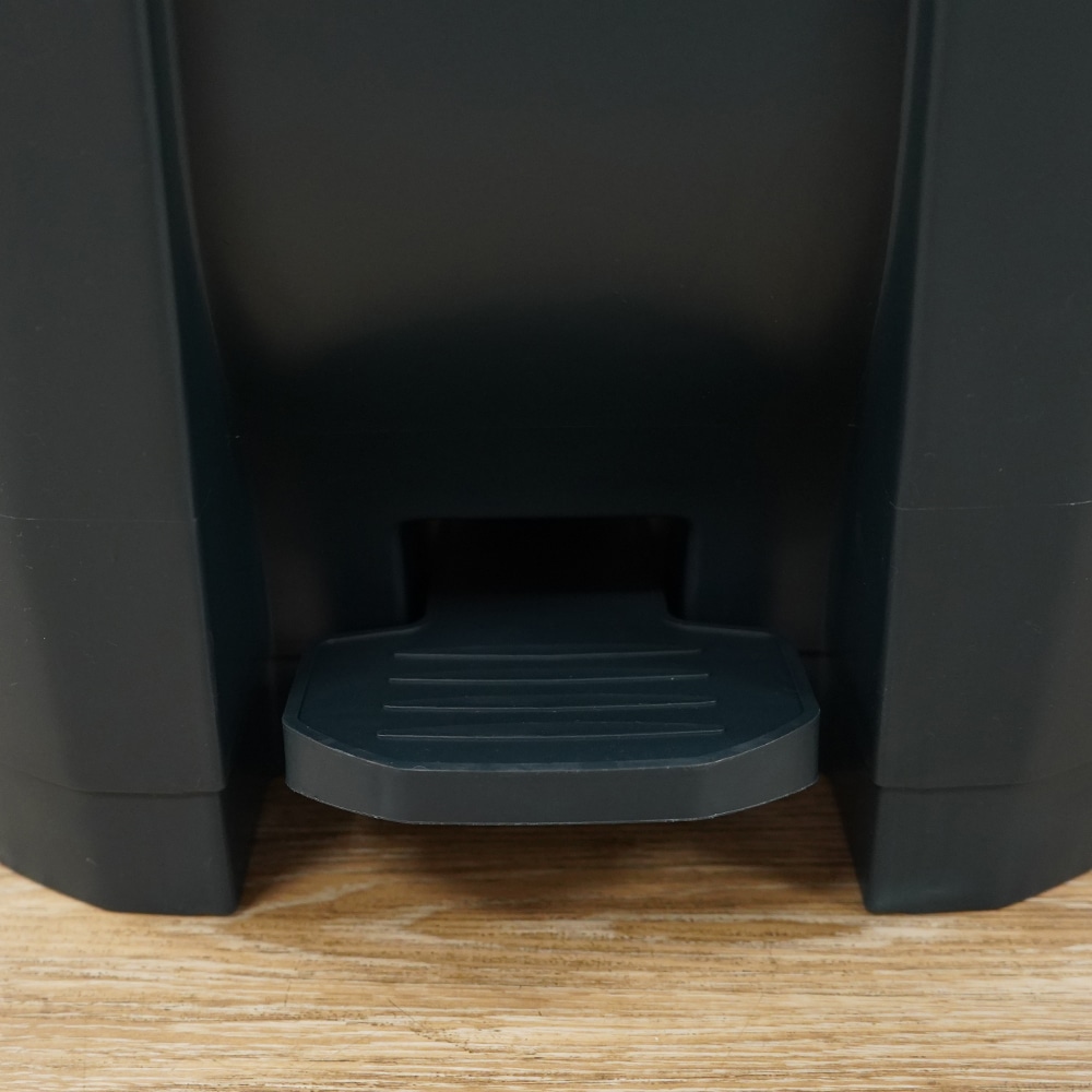 Durable, smooth plastic construction makes the bin easy to clean. Liner hooks under the bin lip secure garbage bags during use. The 80L capacity is well suited for busy, shared environments with moderate to high waste output.
