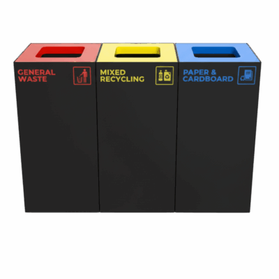 These bins are available in a variety of sizes and lid colours. With red, blue, green and yellow lids to choose from, you can create your own colour-coded rubbish sorting station.